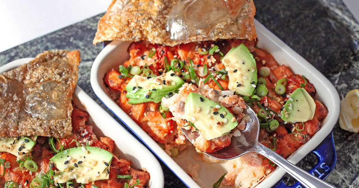 The sushi bake that’s breaking the internet, but make it zero-waste. Creamy miso-seasoned rice, rich salmon, and the crispiest “chips” made from what everyone else …