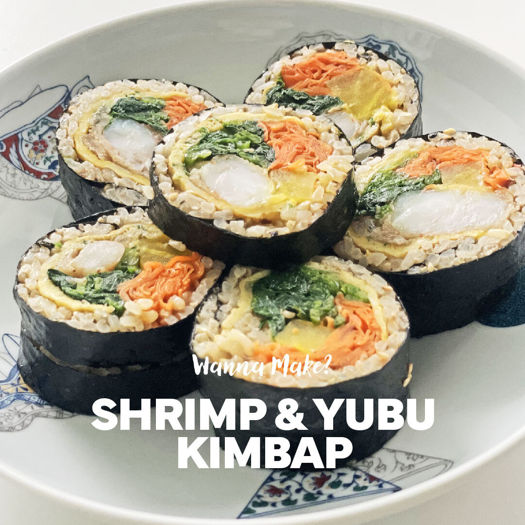 Now that I live abroad, kimbap has become more than just a meal. It’s a bridge to memory, a way to bring the warmth of my mom’s kitchen into my own. When I roll kimbap from scratch today, I find myself creating new versions that still carry those roots of comfort. This particular recipe combines two of my favorite ingredients: golden, lightly pan-fried shrimp and yubu (seasoned fried tofu pouches). They create layers of sweetness, chew, and savory umami wrapped inside nutty sesame rice. It’s a roll that feels both familiar and freshly mine.